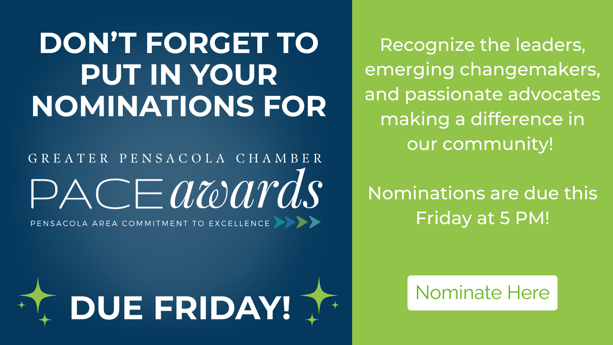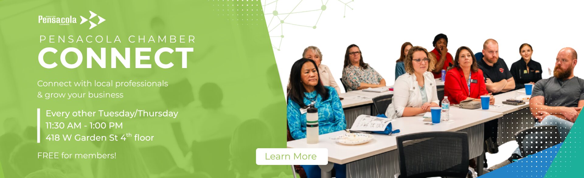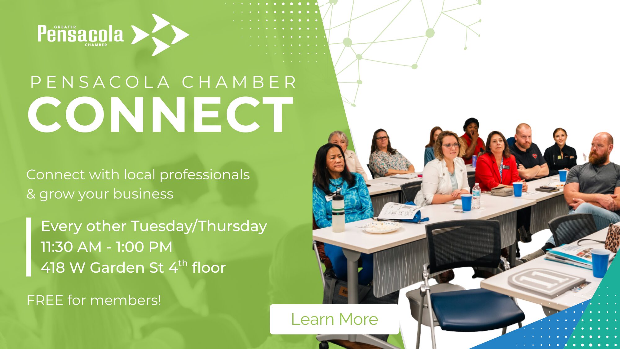 The Greater Pensacola Chamber of Commerce promotes and endeavors to improve the region’s quality of life by promoting and fostering the growth, success, and civic engagement of the business community.